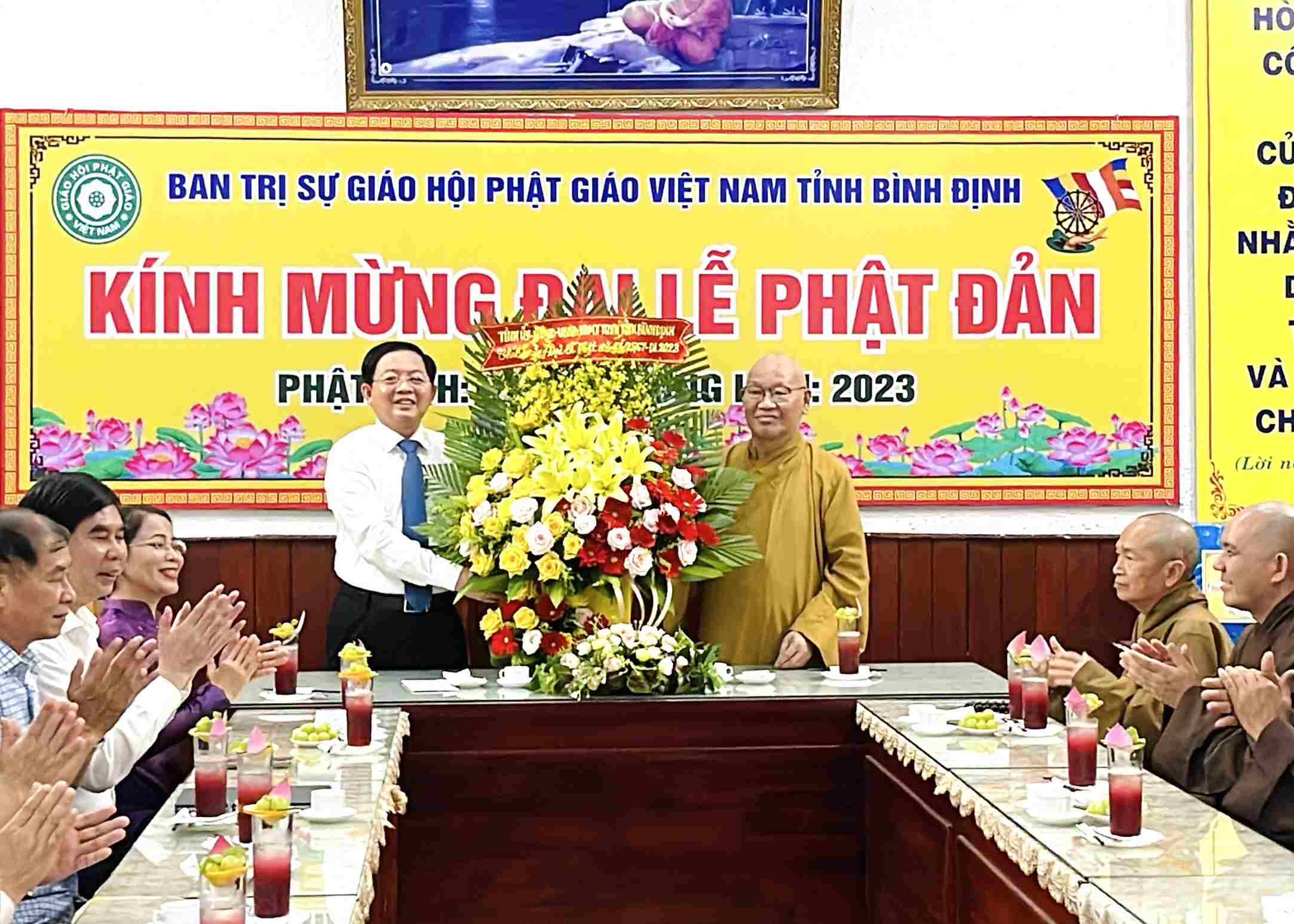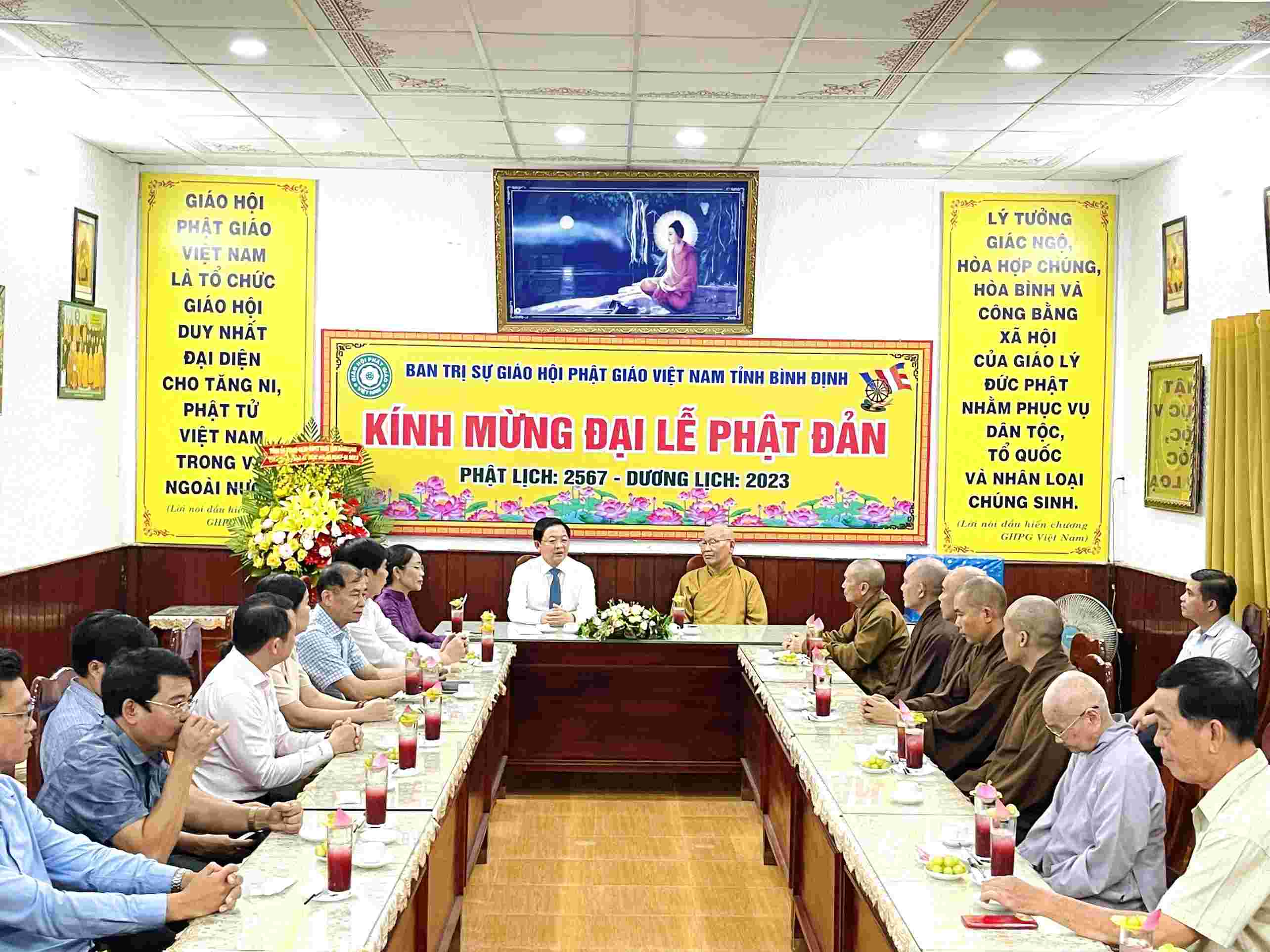 Nhân dịp Đại lễ Phật đản PL.2567 - DL. 2023, chiều ngày 30/5/2023 lãnh đạo Tỉnh ủy - HĐND - UBND - UBMTTQVN tỉnh đã đến Trụ sở Ban Trị sự GHPGVN tỉnh Bình Định thăm và chúc mừng mùa Đản sanh lần thứ 2647 của Đức Thế Tôn.