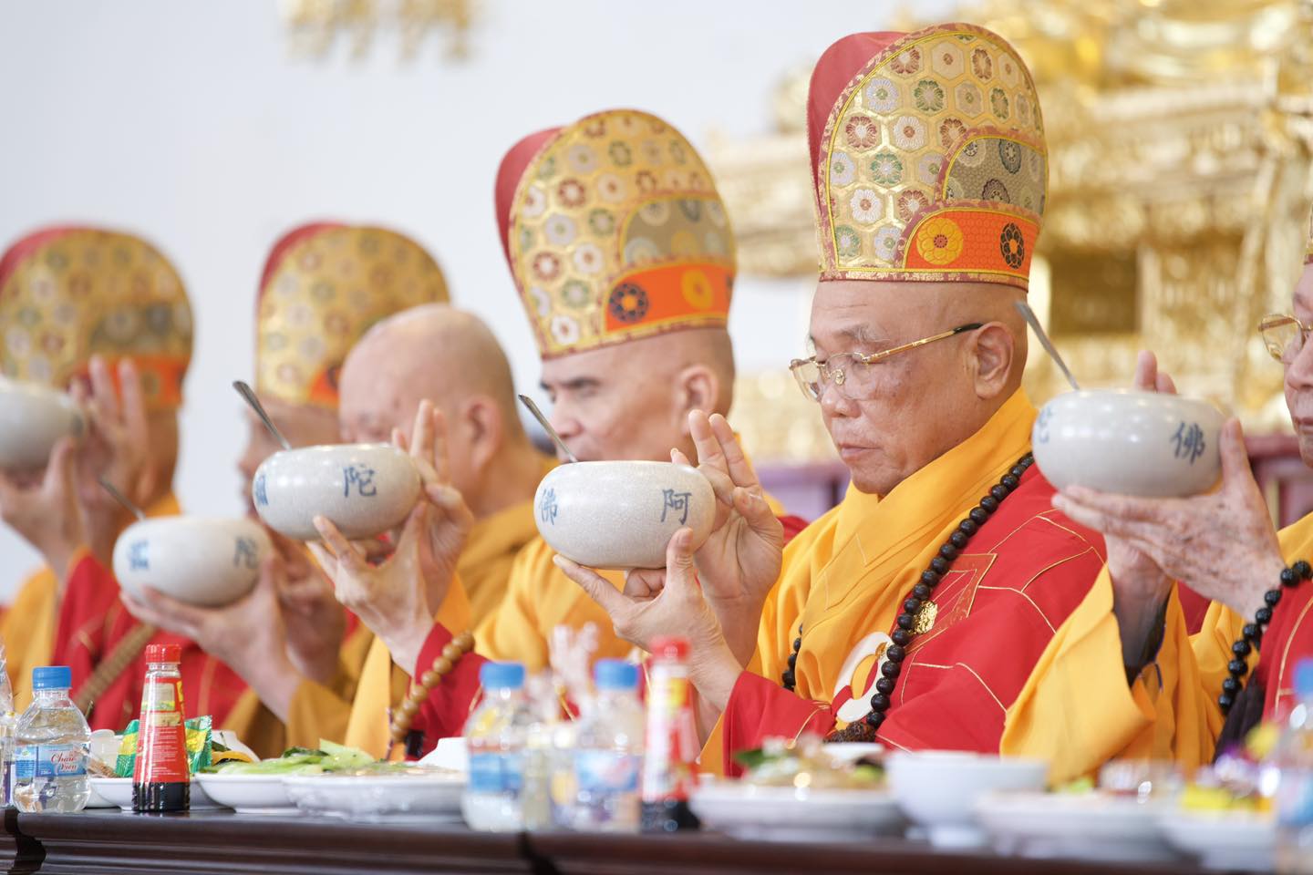 Buổi lễ khép lại trong đạo vị sâu lắng. Hình ảnh chư Tôn đức Tăng già trang nghiêm thọ trai, giới tử cúi đầu cung kính hành lễ, và hàng Phật tử hoan hỷ cúng dường đã trở thành biểu tượng đẹp của tinh thần lục hòa, của giới hạnh thanh tịnh và tình đạo sâu dày.