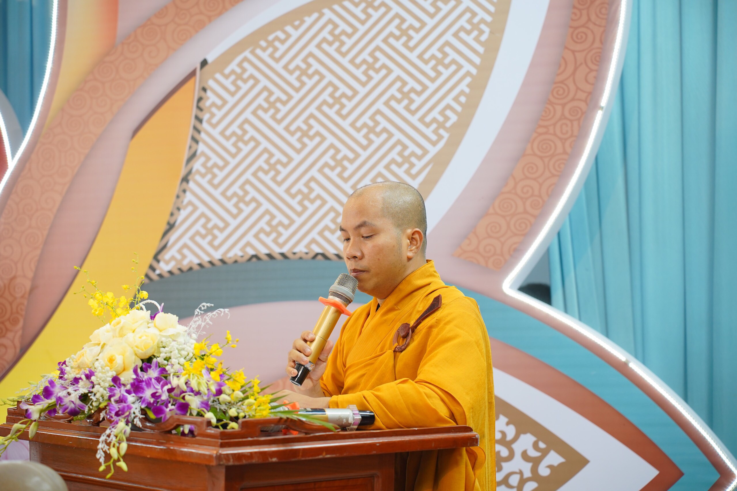 Sau đó, đại chúng cung thỉnh Thượng Toạ Thích Đồng Thành lên cung tuyên Thông điệp Đại lễ Phật đản PL.2568 của Đức Pháp chủ GHPGVN gửi Tăng Ni và Phật tử trong và ngoài nước. Toàn thể đại chúng đã một lòng thanh tịnh, chắp tay thành kính, đón nghe bức Thông điệp đầy ý nghĩa của Đức Pháp chủ GHPGVN: “ Mùa Phật đản, mùa của yêu thương và hiểu biết, tôi kêu gọi tất cả những người con Phật hãy tinh tấn thực hành những lời dạy vàng ngọc của Đức Phật; tịnh hóa tâm thức; chuyển hóa tam độc tham, sân, si thành tam vô lậu học giới, định, tuệ; kiến tạo chánh báo trang nghiêm thanh tịnh để hình thành y báo hòa bình, an lạc như kinh Duy Ma Cật đã dạy: “Tâm bình thế giới bình”.”