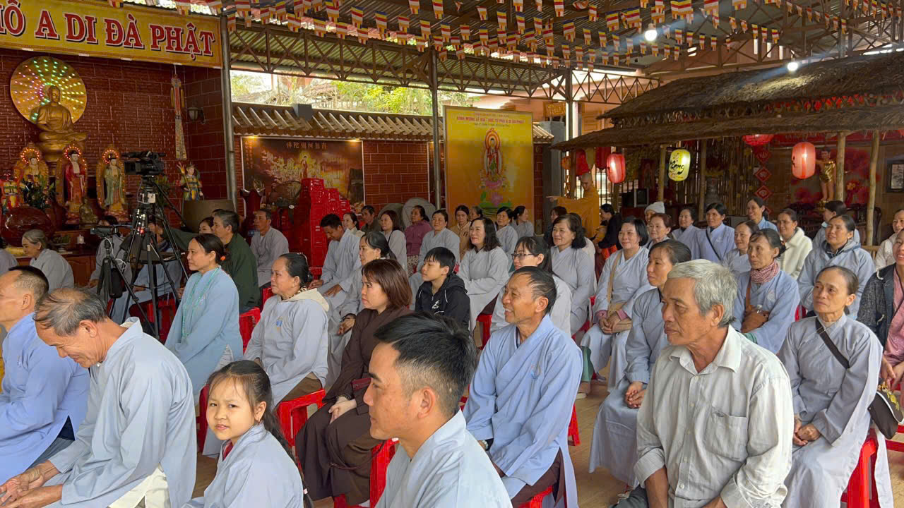 Trang nghiêm nghi thức, thấm đượm đạo tình, chương trình được cử hành theo nghi lễ truyền thống của Phật giáo. Đạo tràng trang nghiêm, Ban cung nghinh tác pháp Cung thỉnh chư Tôn đức quang lâm chánh điện, niêm hương bạch Phật, khai đàn lễ. Đại chúng đồng trì tụng Kinh Vô Lượng Thọ, tán dương công hạnh và đại nguyện tiếp dẫn của Đức Phật A Di Đà. Đúng 11g15, đạo tràng Thọ trai trong chánh niệm. Chiều cùng ngày, Ban cung nghinh Cung thỉnh ĐĐ. Thích Nhựt Lâm quang lâm đạo tràng, chia sẻ pháp thoại với chủ đề: “Lược sử Đức Phật A Di Đà và pháp môn Tịnh Độ”, giúp Phật tử hiểu rõ hơn về hạnh nguyện tiếp dẫn và con đường niệm Phật cầu vãng sinh Tịnh độ.