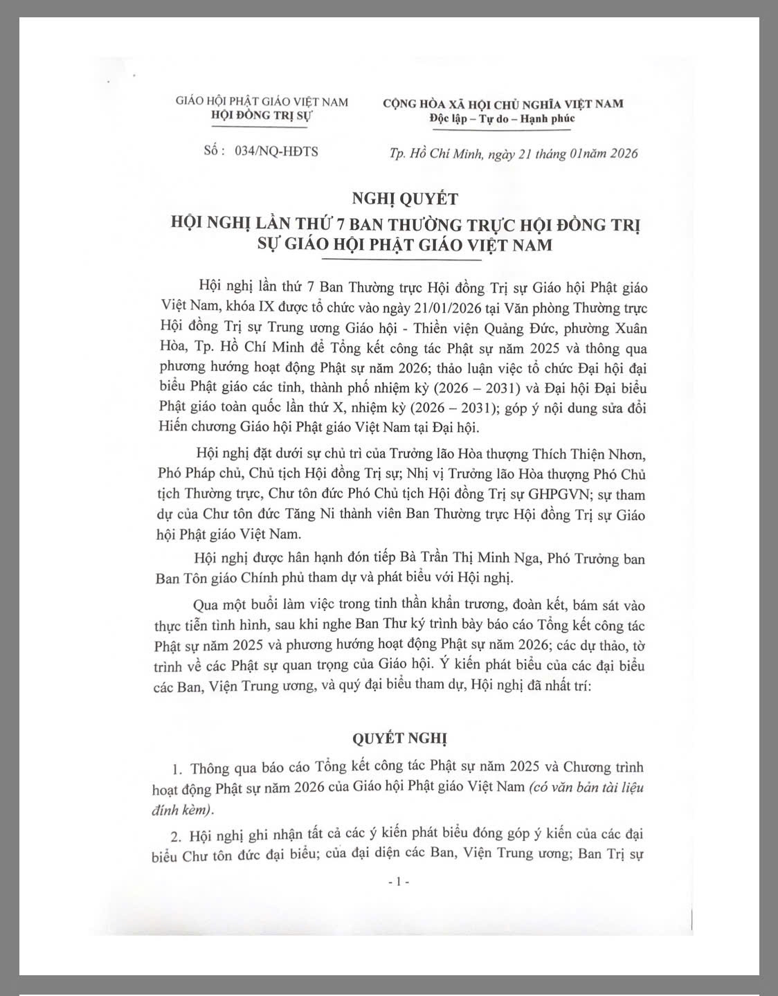 Nghị quyết Hội nghị lần thứ 7 Ban Thường trực Hội đồng Trị sự